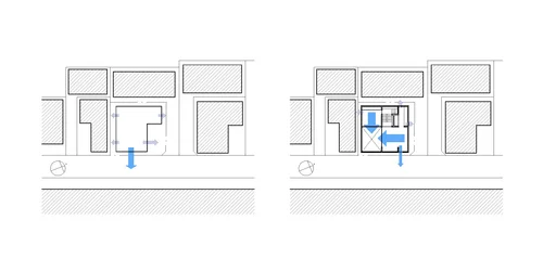A loose triangular ring encircling the entire plaza. It gives shape to the whole site while maximizing the area of preserved greenery. e shape represents the three founding principles of the university and also reflects the shape of the campus that forms a triangle bounded between the Mejiro-dori and Shinobazu-dori roads.